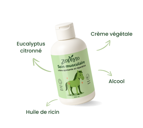 Crème végétale* ; huile de ricin* ; alcool*; mélange de substances aromatiques, dont huile essentielle d’eucalyptus citronné*. *Ingrédients d’origine naturelle
