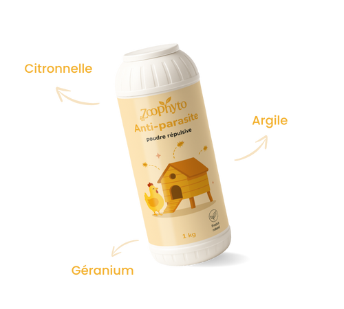 Saupoudrer directement dans les nids, les perchoirs et les zones de repos, en insistant sur les fentes et recoins. Renouveler l’application tous les 7 à 10 jours en période d’infestation, ou 1 fois par semaine en prévention, notamment par temps chaud. Convient également pour une utilisation sous les ailes ou autour du cloaque (éviter les yeux et les voies respiratoires).