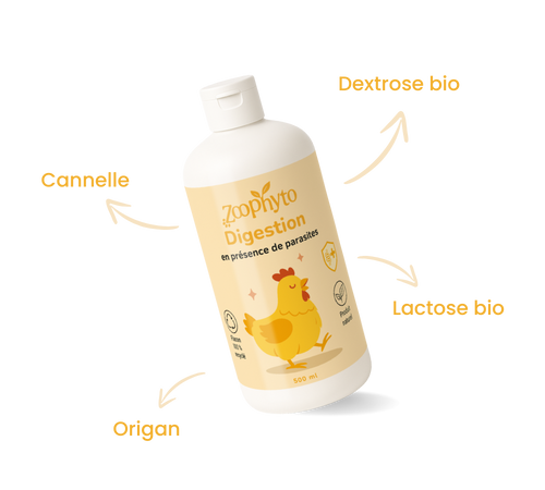 Favorise la santé des volailles en apaisant les troubles digestifs causés par les parasites.